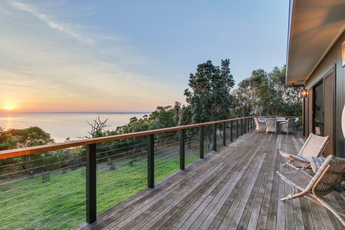 Located on the water in the Gippsland Lakes and beach region, this striking modern design is impressive inside and out. The spectacular views can be enjoyed from both the living area and deck, and the stylish interior selections take the home to another level.