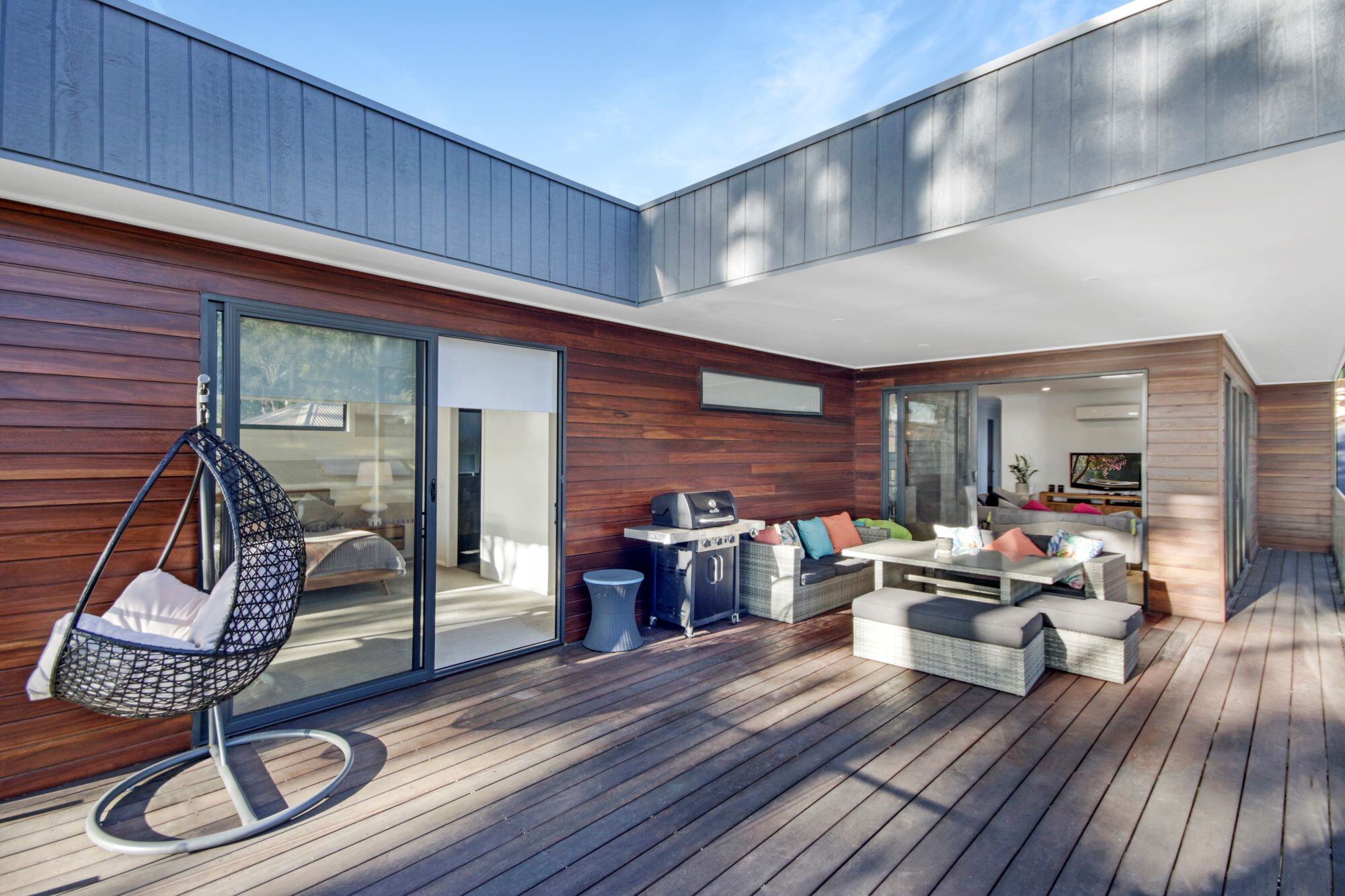 This beautiful waterfront holiday home on the Mid-Coast of NSW enjoys an elevated position, which allows for breathtaking views. With three bedrooms and a large partly enclosed deck overlooking the water, it’s the ideal place for a peaceful getaway.